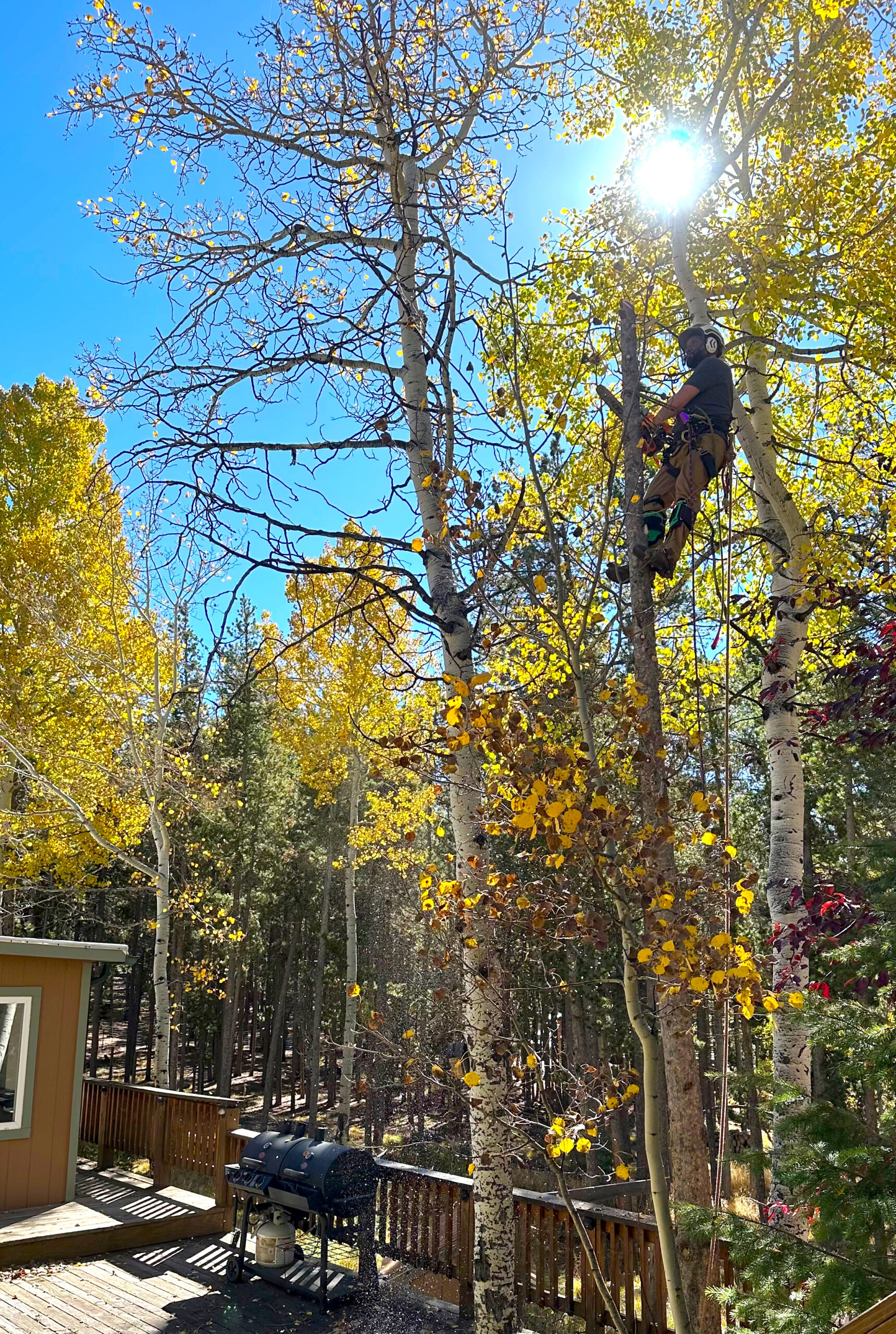 Whether it is 10 feet or 100, we love to climb! Trees on steep terrain close to structures need to be removed with great care and precision.